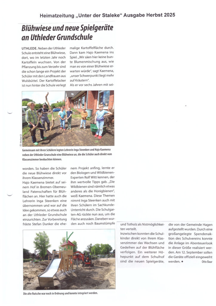 Die Grundschule Uthlede hat sich im Jahr 2017 erstmalig für den jeweils zweijährigen Projektzeitraum im Bereich Bildung für nachhaltige Entwicklung angemeldet und erhält seitdem regelmäßig die Auszeichnung als Umweltschule in Europa. Jede Wiederbewerbung erhielt dabei entweder Ideen zur Vertiefung bereits bestehender Projekte oder Pläne für die Entwicklung neuer Themenbereiche an unserer Schule.