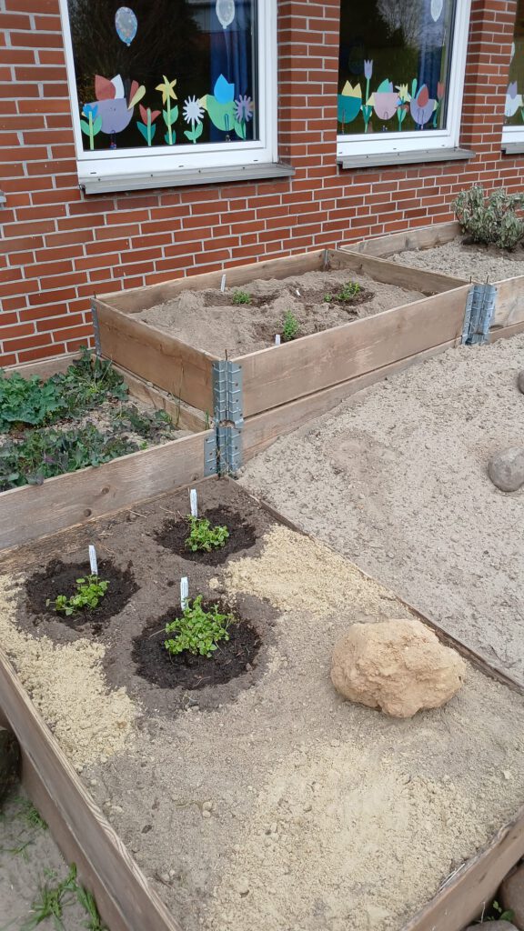 Hochbeete für jede Klasse, Kartoffelbeet für die Erstklässler, Blühpflanzen auf dem Schulhof, Streuobstwiese